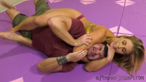 Sheena has long been a favorite at Femdom Studios, mostly because she's as skilled & powerful as she is beautiful. You might be entranced by her incredible body, that is, until she gets you in a wrestling hold and you feel like your life is in peril. When she has you trapped, the fact she is gorgeous slips away and all you can think of is if you will survive. Hawk taps repeatedly and sometimes violently, he's genuinely panicked that she's not going to release him, because she rarely does! Sheena loves exercising her power of men, making them feel weak and helpless, and she doesn't like when a man thinks just because he taps out that she's going to let him go. You genuinely see the frightened look on Hawk's face when she won't let him go. I said in the title that Sheena is a genuine MMA fighter, and she is. Women & men are both scared when they go up against this Hungarian Goddess. She makes him scream in her powerful scissorhold, rear nake choke, camel clutch where she twists his head off, sitting on his face and pinning him down, helpless to get her off him. She is power, beauty, skill and awesomeness. Watch this video to see just how badass she is.Free Gallery